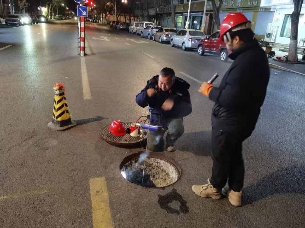 在排查过程中,为精准锁定漏点、大幅提升排查效率,查漏专班摒弃了传统粗放式的排查方式,引入听漏仪、管线探测仪、热成像仪等设备,并与人工巡检、数据分析相结合,构建起一套“技防 + 人防”的立体排查体系。白天,技术人员对管网运行数据进行全面分析,凭借专业知识和丰富经验,精准划定高风险失水区域;夜间,城市进入低噪音状态,深入大街小巷、小区庭院,沿着管线逐段仔细排查。他们俯身贴耳捕捉细微漏水声,手持仪器,反复扫描管线走向,面对复杂深埋的管线,也不畏严寒、细致核对,不遗漏任何一个可疑漏点。
